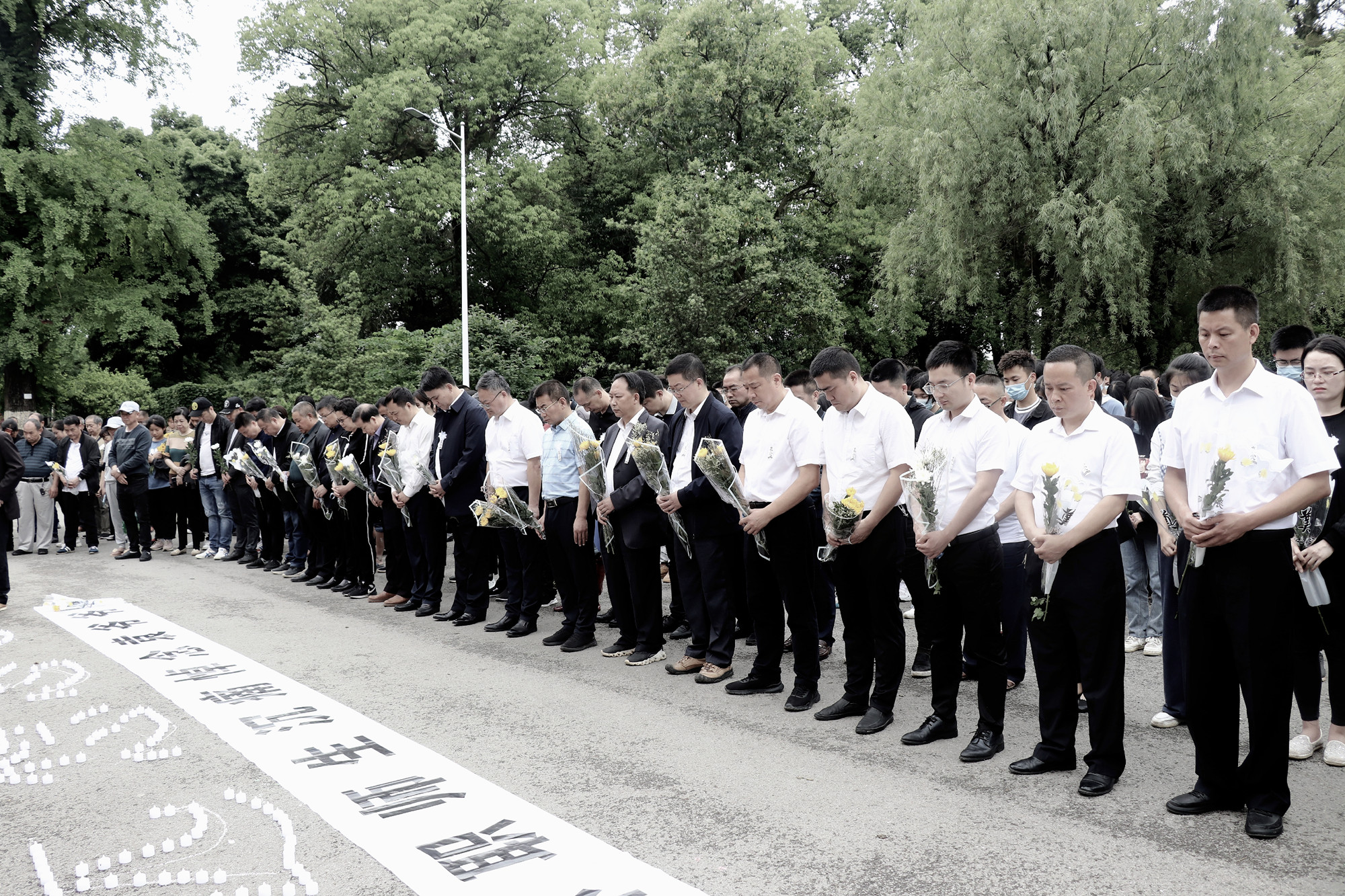 10时,活动正式开始,全体人员神情凝重,双手垂立,低头默哀。