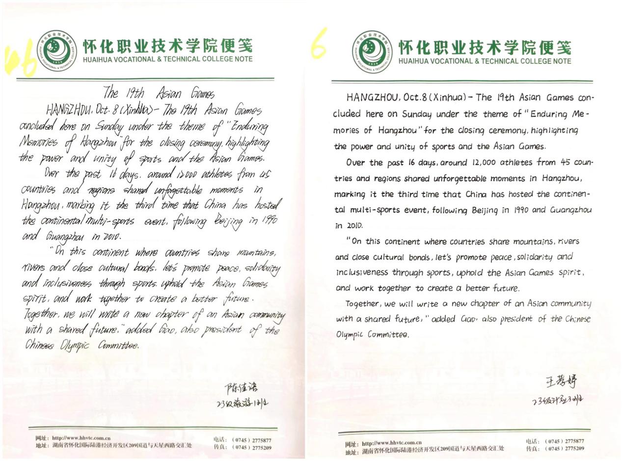 近日,我校成功举办第二届英文书写比赛。共评选出一等奖7名,二等奖14名,三等奖21名,优胜奖26名。活动前期,学校基础课部在全校范围内进行了积极的比赛宣传,极大调动了学生参赛的积极性,共有3713名学生报名参加此次比赛。经过对初赛作品层层筛选,68人晋级最后决赛。本次英文书写比赛不仅丰富了学生们的校园文化生活,给学生提供了一个展示自我的舞台,也培养了学生良好书写习惯。