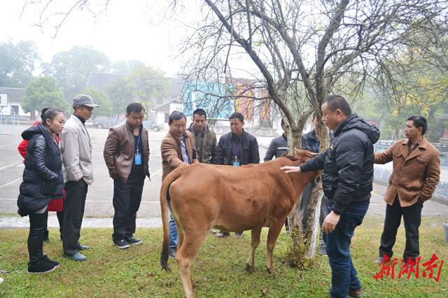(学校舒鸣老师在安江农校给养殖户进行养牛及其疾病诊断和治疗现场培训。)