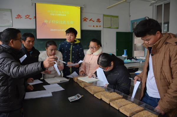 张圣喜副院长首先对我院2015年学生专业技能竞赛作了工作总结。我院于11月23日—27日举行了2015年学生专业技能竞赛。9个系部选派了360名选手参加了新城疫检测项目、汽车营销项目、工程测量项目、种子千粒重测定项目、平面设计项目、英语口语项目、电气安装与维修项目、会计技能项目、导游讲解项目、思想政治理论课实践教学成果展示(微视频)项目10个项目的比赛。同学们积极配合,努力拼搏,最后黄意强:杨丽丽、舒美玲等22名学生分别获得各项目一等奖,钟世昉、周达凡等39名学生获得二等奖,:杨镇宇张波、张海龙等129名学生获得三等奖。侯强红、付昌星、孟祥宇等12名教师获得优秀指导教师一等奖,商贸管理系、信息与艺术设计系两个系部获得优秀组织奖。
