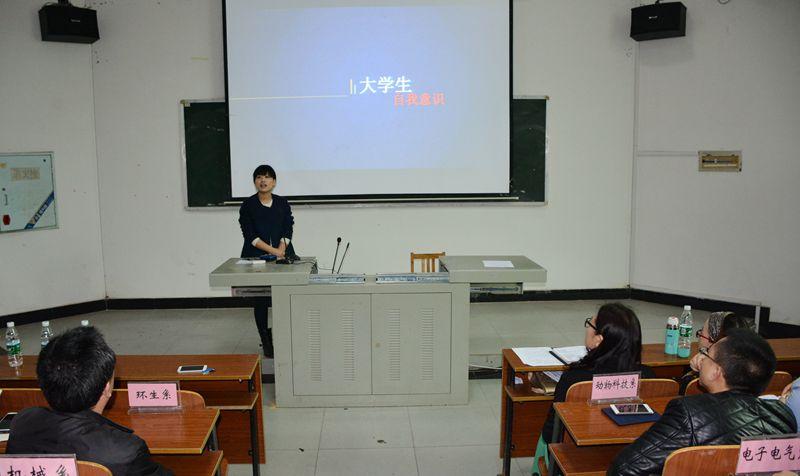 米兰老师围绕《大学生自我意识》这一章节,讲述了本章的教学目标、教学方法、教学设计、教学质量等方面,并跟在座老师分享了自己参加省级说课比赛并获得一等奖的经历和收获。
