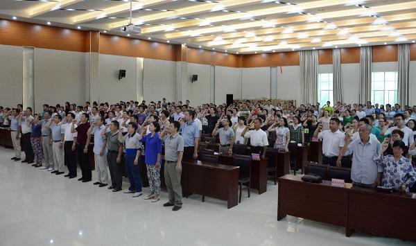 7月1日下午,怀化职院大会议室党旗飘扬、党徽闪耀,全院庆祝中国共产党成立95周年大会在这里隆重举行。全体院领导、全体党员、离退休党员代表、预备党员共300余人怀着激动的心情,共同回顾党的光辉历程,讴歌党的光辉业绩。