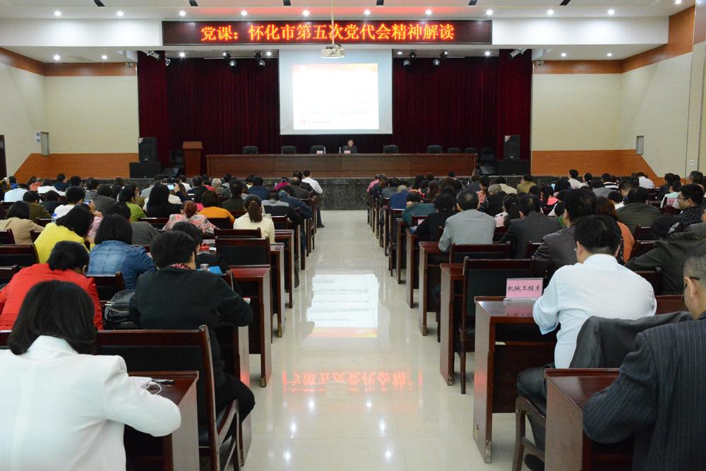 会上,胡书记首先介绍了会议概况,中共怀化市第五次代表大会选举产生了中共怀化市委、市纪委新一届领导班子、怀化市出席中共湖南省第十一次代表大会代表和市委常委。我院党委书记胡佳武同志当选市委委员,胡书记表示这是怀职的光荣,是市委对我院工作的支持与肯定。