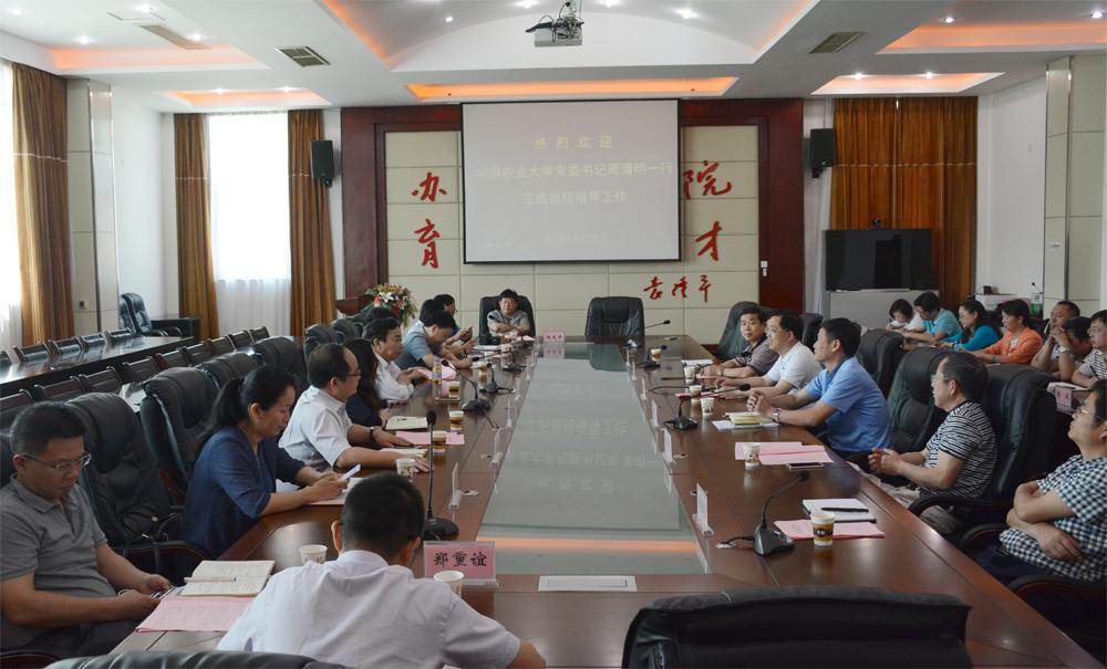 5月27日上午,湖南农业大学党委书记周清明、党委副书记卢向阳一行12人莅临我院考察交流。