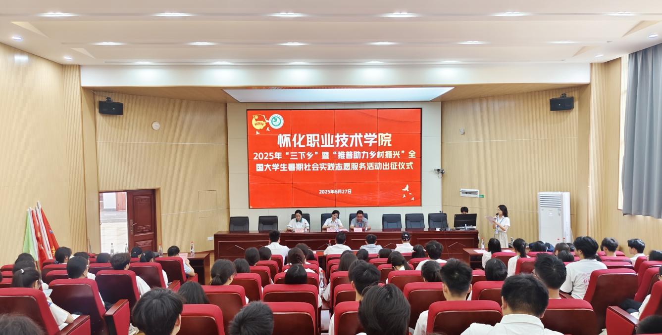6月27日上午,我校在学术报告厅举行2025年大学生暑期“三下乡”暨“推普助力乡村振兴”社会实践志愿服务活动出征仪式。学校党委委员副校长廖冬云出席。学生工作处、校团委负责人,各二级学院团总支书记及实践团全体成员参加。